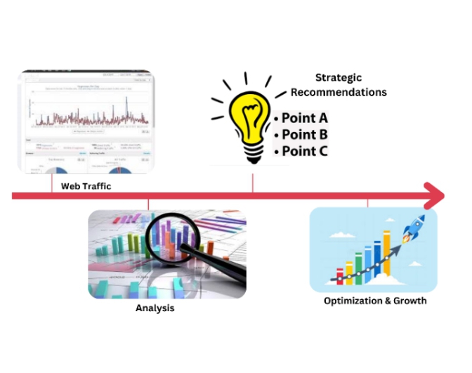Strategic Recommendations (lightbulb with bullet points: “Refine Ads,” “Improve UX”).