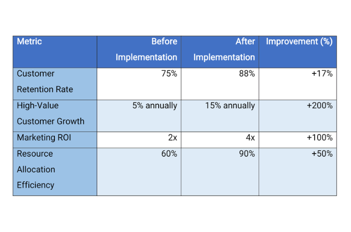 The implementation of the CLV Analysis & Prediction Dashboard delivered significant improvements across key business areas as below:
